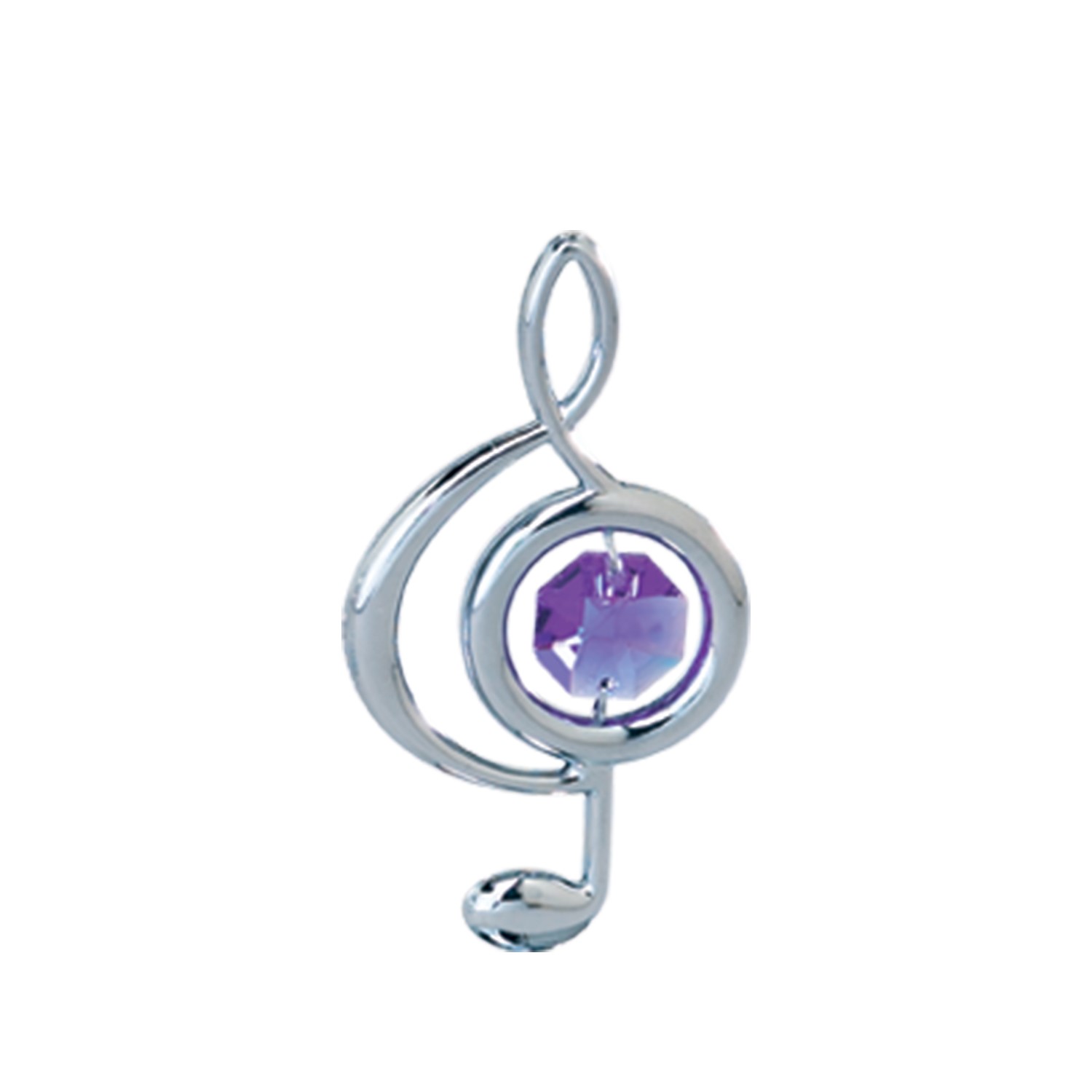 Chrome Plated Small Treble Clef Ornament w/Swarovski Element Crystal (BL/PU)