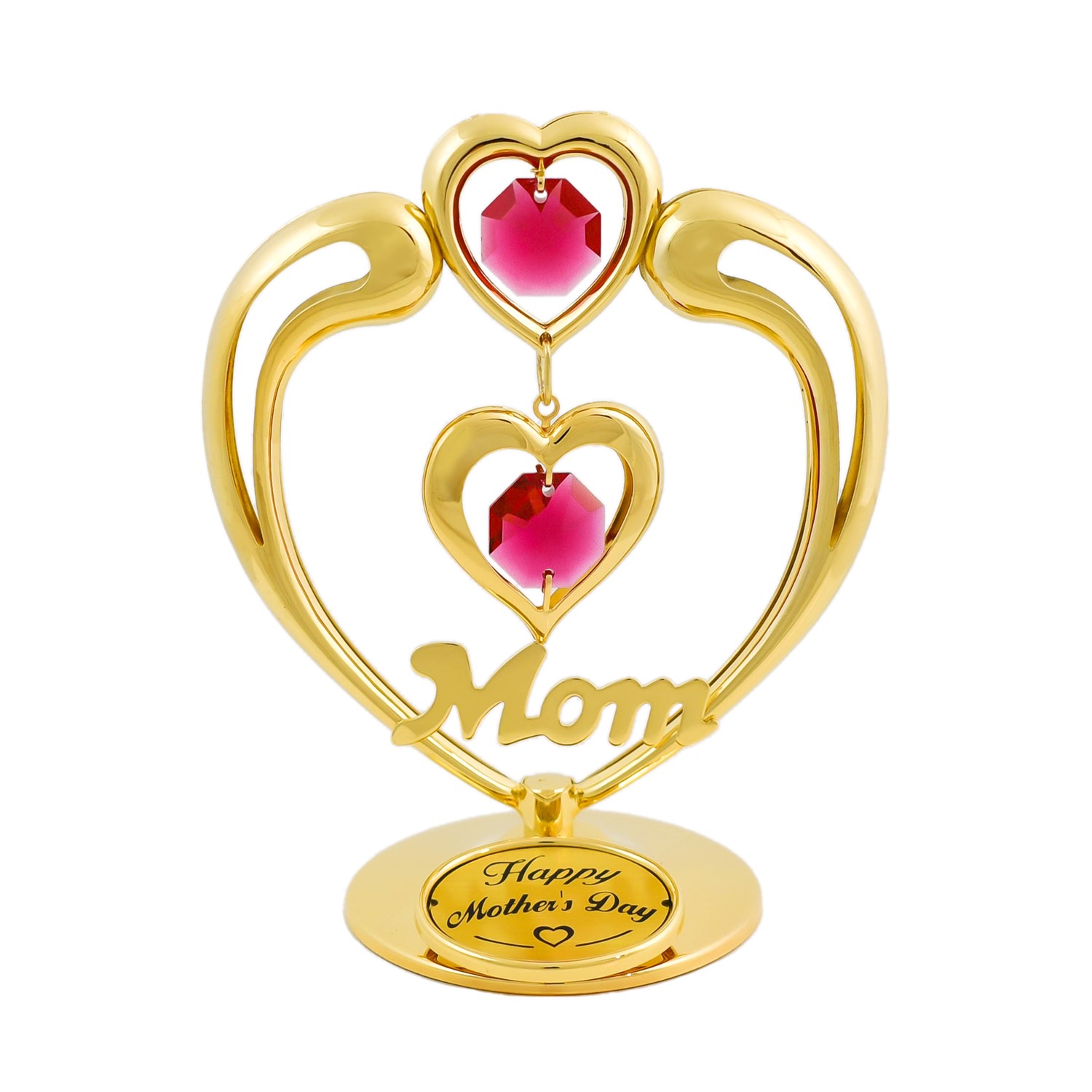 Gold Heart in Heart w/"Mom" w/ Logo "Happy Mother's Day" Free Standing w/Swarovski Element