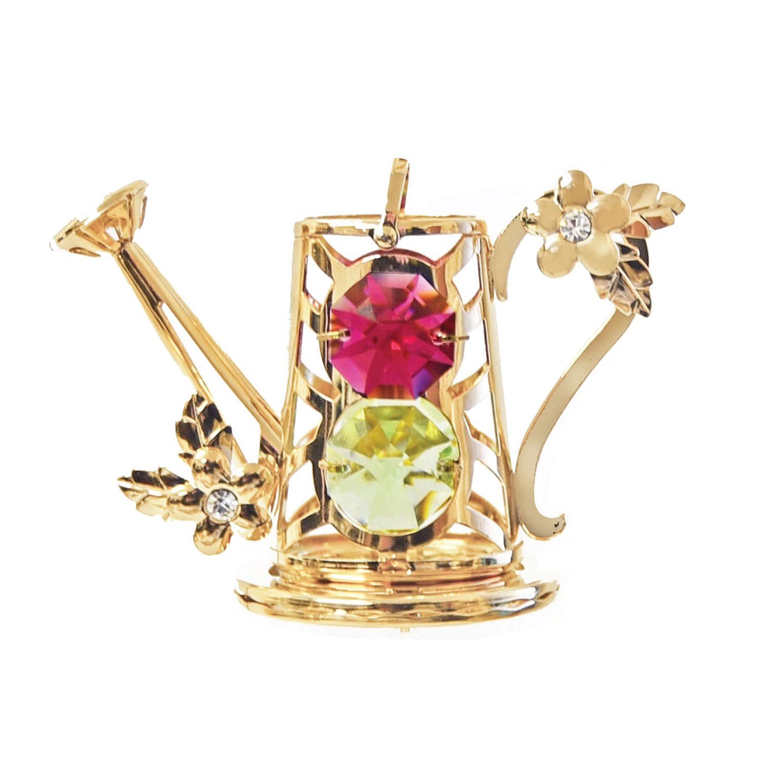 24K Gold Plated Watering Can Tabletop Free Standing with Swarovski Crystal. Perfect for Valentine's Day, Mother's Day, Christmas Day, Anniversary Day, birthday, wedding and Thanksgiving Day. Size: 3"X2.75"