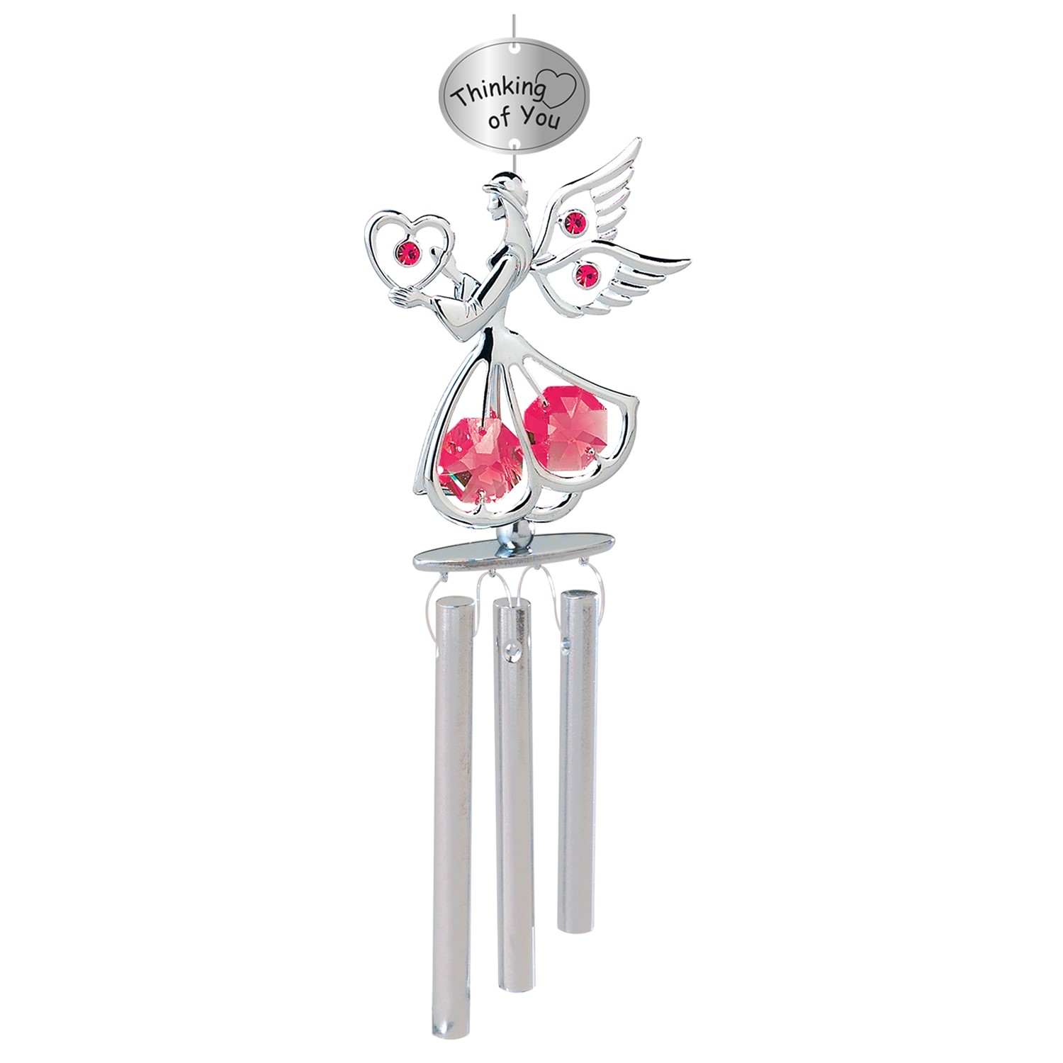 Chrome Angel w/Heart w/Logo "Thinking of You" Wind Chime w/Swarovski Crystal (12 Colors). Perfect for Valentine's Day, Mother's Day, Christmas Day, Anniversary Day, birthday, wedding and Thanksgiving Day. Size: 2"X5"