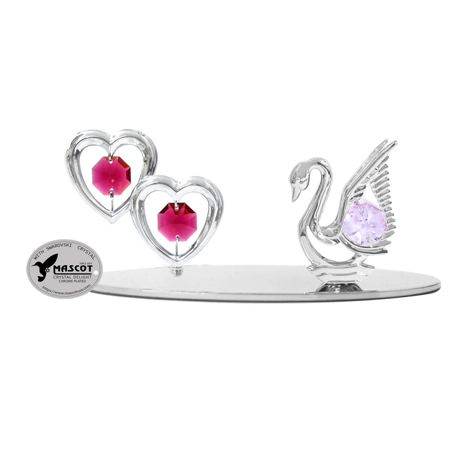 Gold Plated Swan & Twin Hearts Tabletop Free Standing w/Swarovski Crystal. Perfect for Valentine's Day, Mother's Day, Christmas Day, Anniversary Day, birthday, wedding and Thanksgiving Day. Size: 4"X2.25"