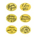 One Gold Logo Badges to choose from include: Thank You, Congratulations, Happy Anniversary, Happy Birthday, I Love You, Happy Mother's Day.