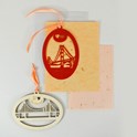 Gift Card Package includes: San Francisco Paper Ornament/Bookmark w/ Ribbon, Xuan Gold/Silver Speck Paper, Xuan Fiber Paper, Wooden Golden Gate Bridge Ornament, and envelope