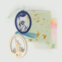 Gift Card Package includes: NYC Paper Ornament/Bookmark w/ Ribbon, Xuan Gold Speck Paper, Xuan Fiber Paper, Wooden Big Apple Ornament and envelope