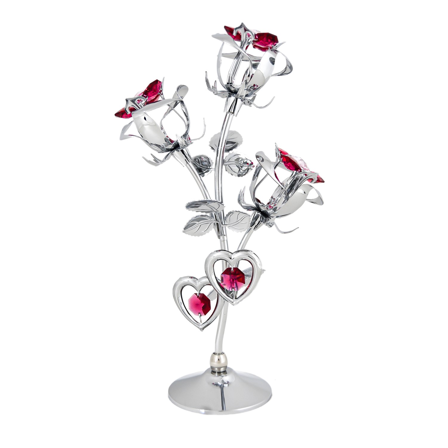 Chrome-Plated Rose 3 Roses on Stand Ornament with Swarovski crystals. Perfect as romantic Valentine's day gift, home decor or a special gift for moms, girlfriends, grandmas, and daughters on birthdays, Christmas, weddings, anniversaries, and all occasions. Products are assembled with care in Berkeley, CA, with Authentic Swarovski crystals.