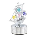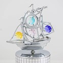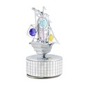 CHROME-PLATED PIRATE SHIP - MIRROR MUSIC BOX W/ SWAROVSKI CRYSTALS (MX)