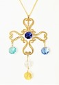 24K GOLD-PLATED HANGING CHANDELIERS W/ BLUE CRYSTAL